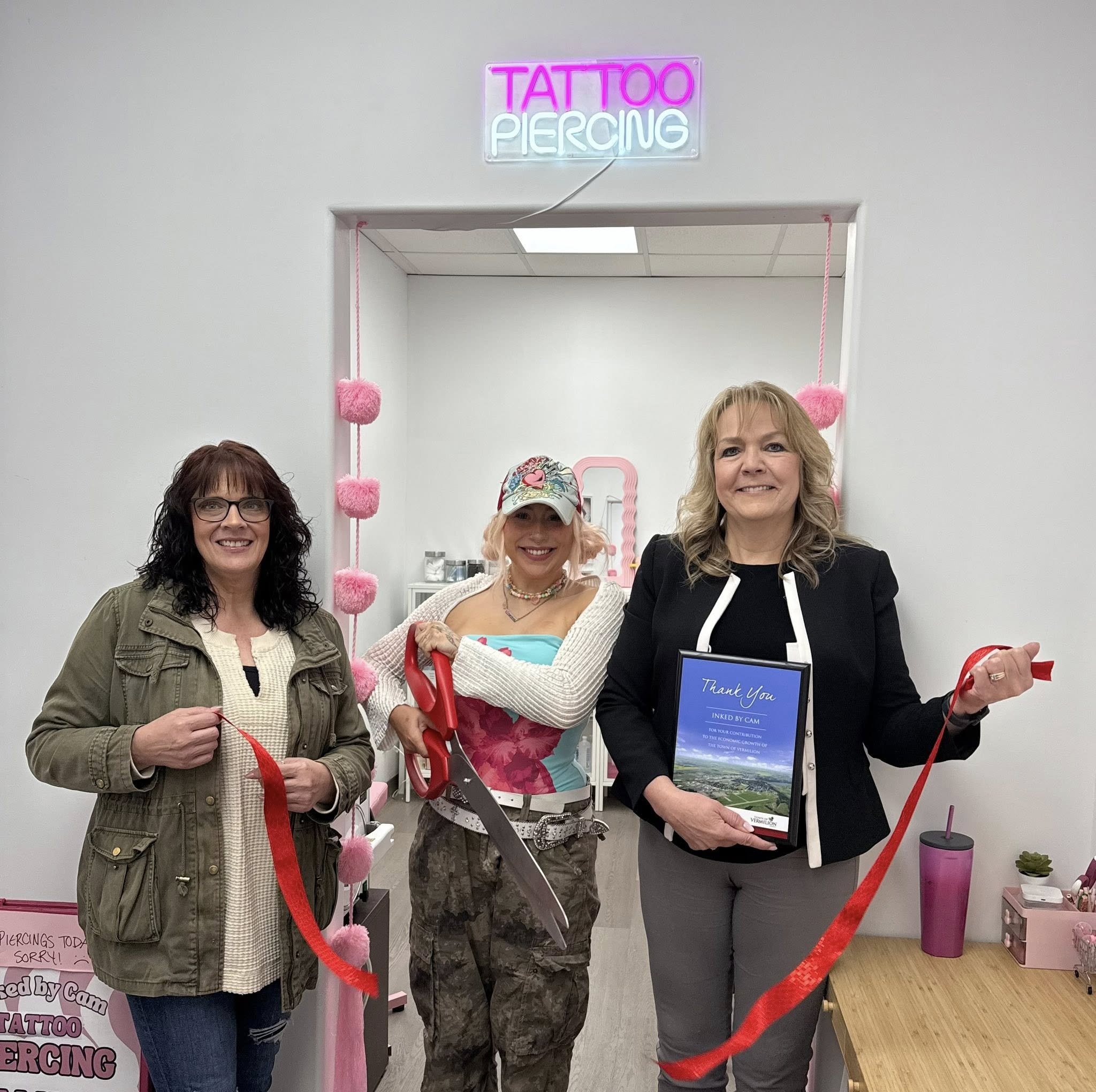 Economic Development for the Town of Vermilion celebrated Inked by Cam this morning with a ribbon cutting and plaque presentation!